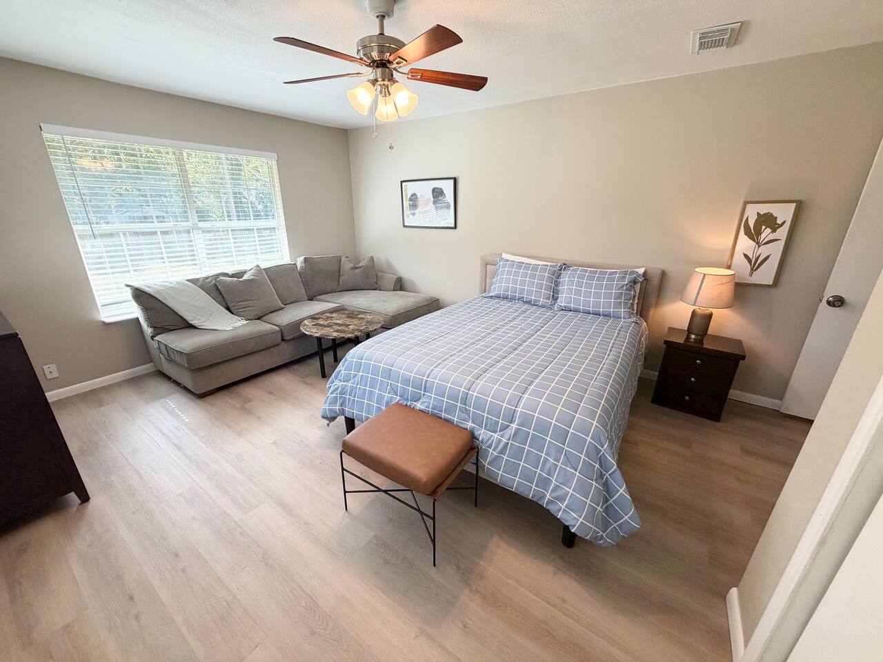 Enjoy a cozy, spacious bedroom with a queen bed and private sitting area in a safe, quiet neighborhood. You’ll have shared access to the kitchen, living room, and outdoor space—perfect for relaxing after a busy day. Conveniently located just 2 miles from Baylor Scott & White Hospital, VA Hospital, Walmart, HEB, Temple Mall, and great local restaurants. Ideal for solo travelers or professionals looking for a clean, comfortable, and affordable place to stay!