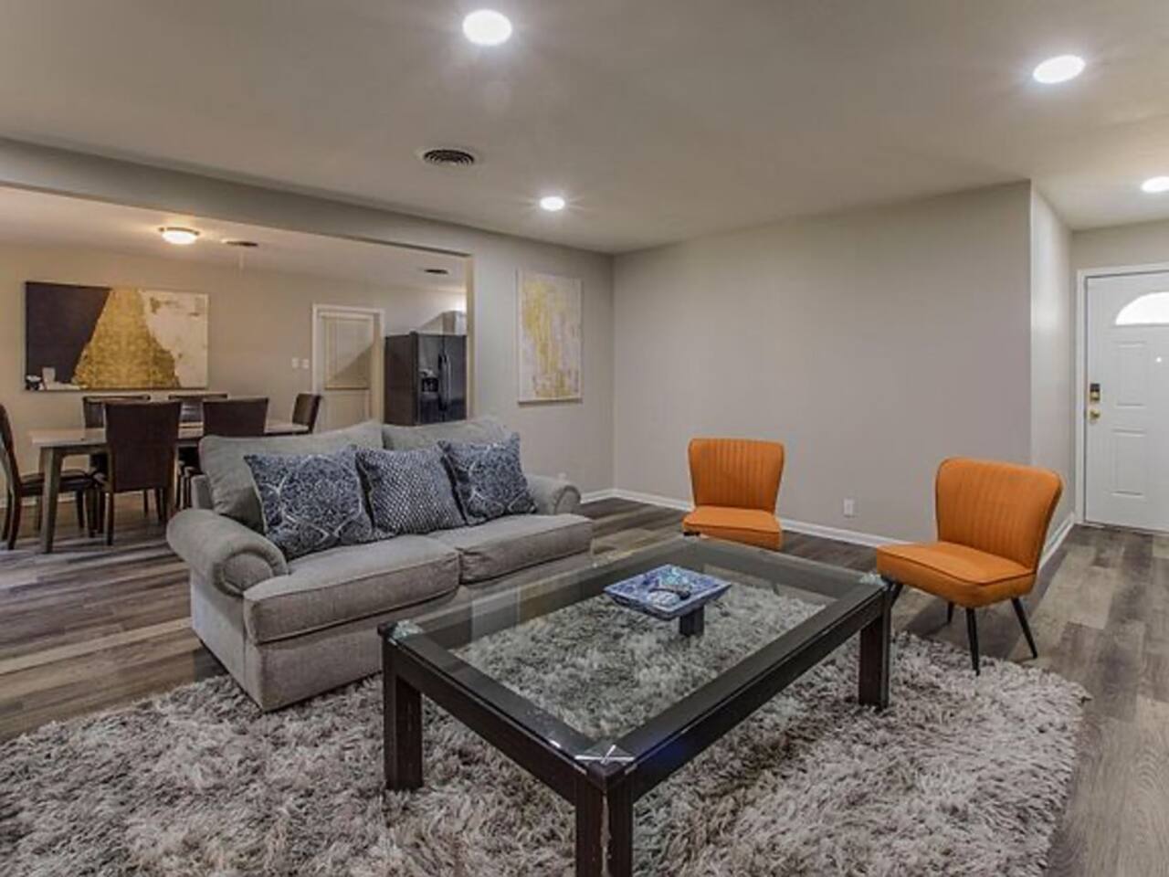 Bedroom: Queen-size bed with fresh linens, closet/storage space, Smart TV, and a lock for privacy Bathroom: Shared bathroom Living & Dining Areas: Our shared spaces are perfect for relaxing and socializing! The living room features a plush sofa and a large flat-screen Smart TV, ideal for cozy movie nights. Right next to it, the spacious dining area offers a great spot for meals or friendly conversations. Kitchen: Our fully equipped kitchen has everything you need, including essential appliances, cookware, and utensils. A toaster oven and coffee maker are available for quick, on-the-go breakfasts. Feel free to stock the fridge with your favorite groceries and enjoy a fresh cup of coffee to start your day! Amenities: WiFi & Smart TV Fully stocked kitchen Washer & dryer access Central heating & A/C Keyless entry for convenience Starter toiletries & fresh towels