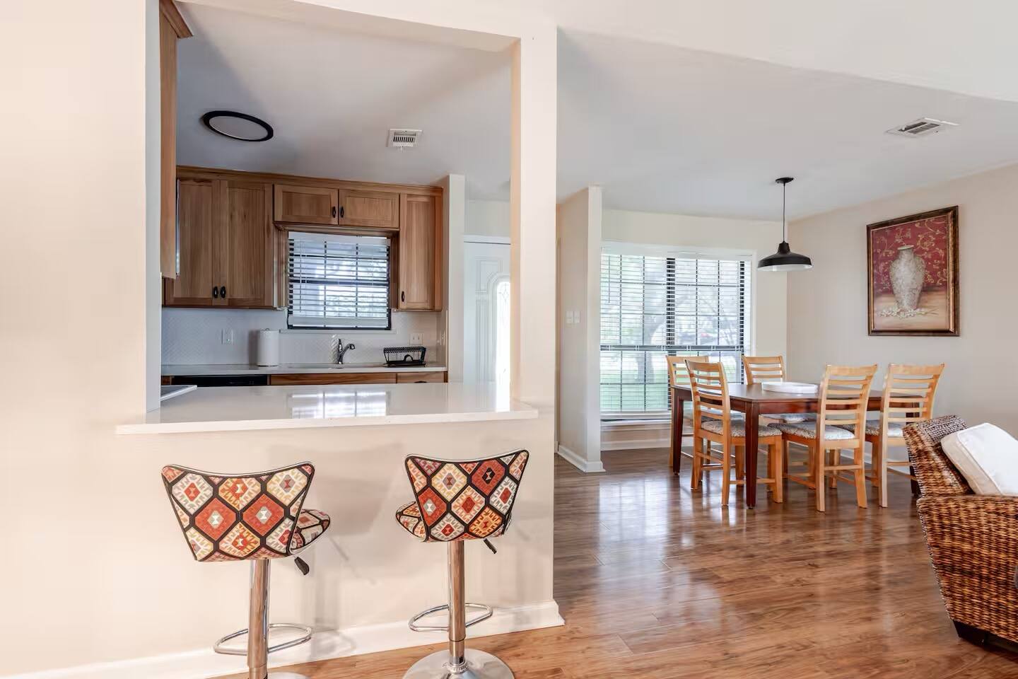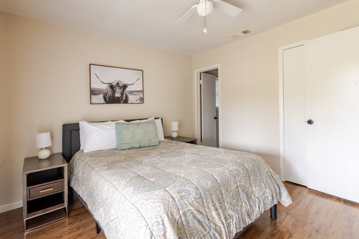 Bedroom: Queen-size bed with fresh linens, closet/storage space, Smart TV, and a lock for privacy Bathroom: Private bathroom Living & Dining Areas: Our shared spaces are perfect for relaxing and socializing! The living room features a plush sofa and a large flat-screen Smart TV, ideal for cozy movie nights. Right next to it, the spacious dining area offers a great spot for meals or friendly conversations. Kitchen: Our fully equipped kitchen has everything you need, including essential appliances, cookware, and utensils. A toaster oven and coffee maker are available for quick, on-the-go breakfasts. Feel free to stock the fridge with your favorite groceries and enjoy a fresh cup of coffee to start your day! Amenities: WiFi & Smart TV Fully stocked kitchen Washer & dryer access Central heating & A/C Keyless entry for convenience Fresh towels